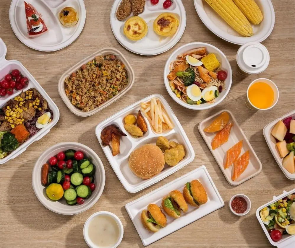 The production process of sugarcane pulp tableware does not require the addition of any chemical substances and made under high temperature, thus ensure the safety, hygiene, non-toxic, non-harmless and pollution free features. And it's very convenient for food packaging especially for QSR industries.